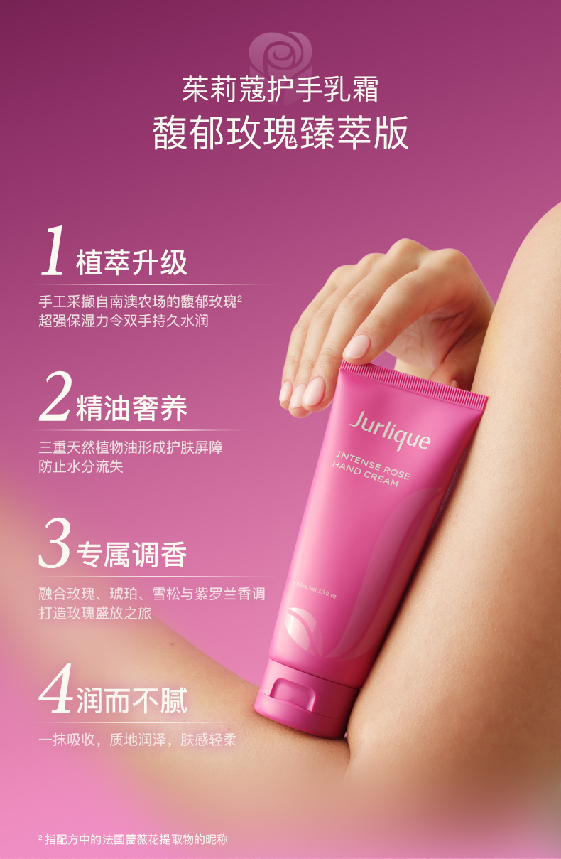 延续茱莉蔻40周年玫瑰传奇 蕴含新一代独家馥郁玫瑰 在层叠芬芳中,绽放双手柔嫩新生