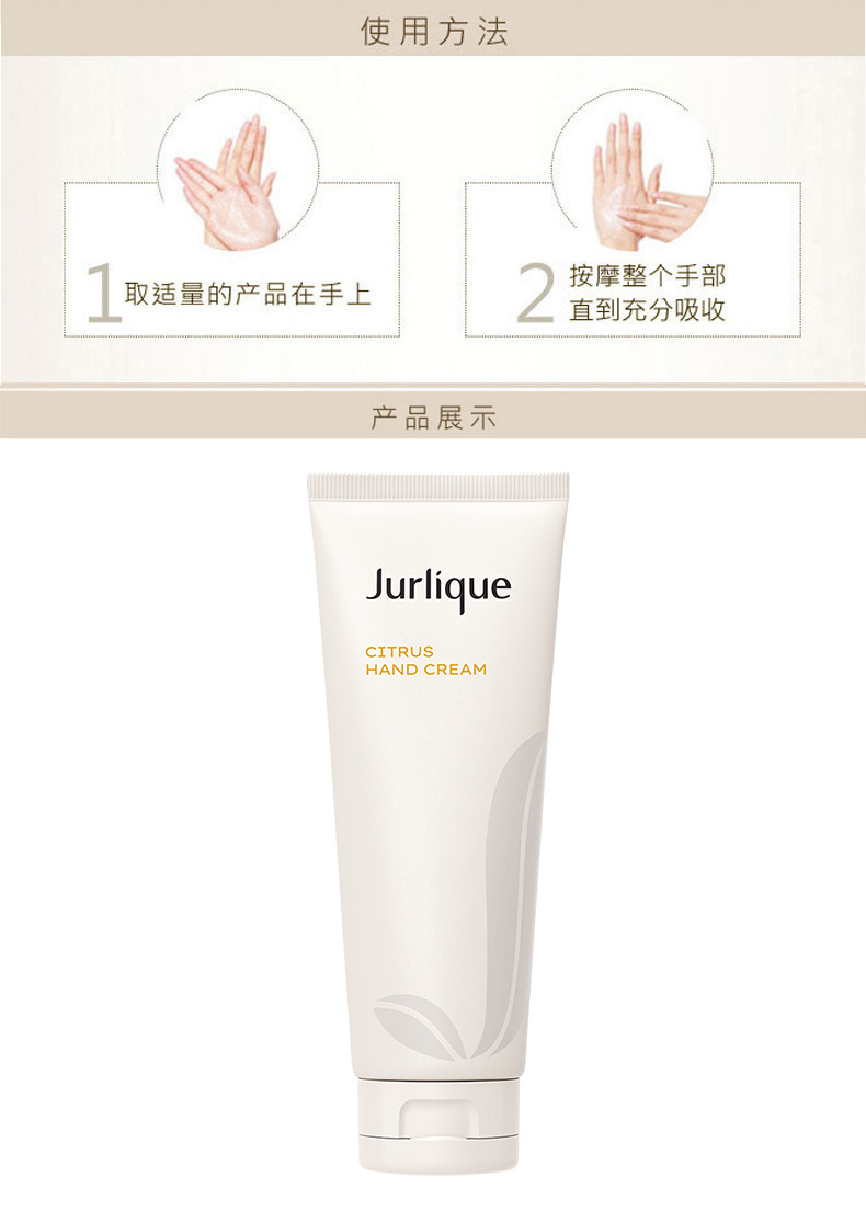 取适量的产品在手上,按摩整个手部直到充分吸收。每天可根据需要多次使用。手腕及关节部分可加强 (足部亦可使用) 。更可作为手膜使用