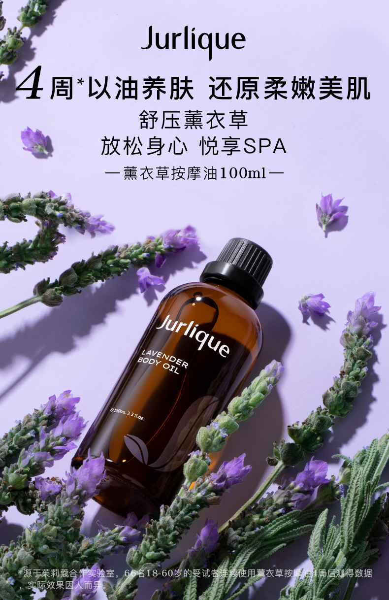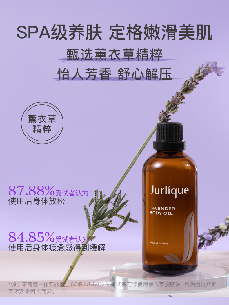 一款放松身心的舒缓身体油 蕴含薰衣草精油成分 可作全身按摩或局部使用 具有舒缓解压的功效 (新旧包装随机发货)