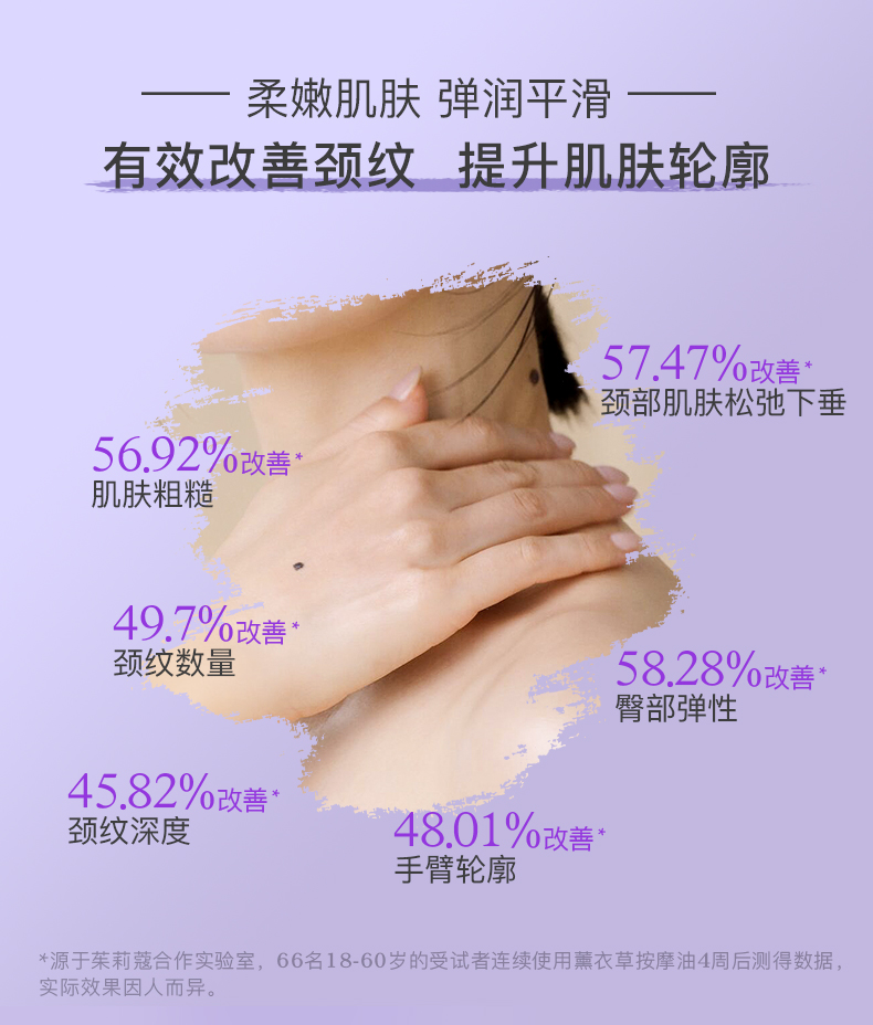 ^源于茱莉蔻合作实验室,66名18-60岁的受试者连续使用玫瑰按摩油4周后测得数据,实际效果因人而异。